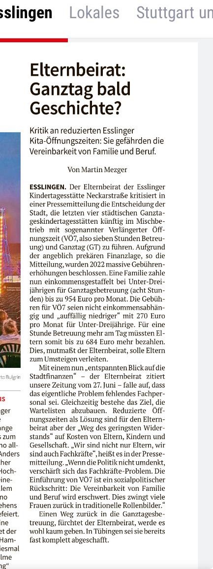 Webseite der Esslinger Zeitung