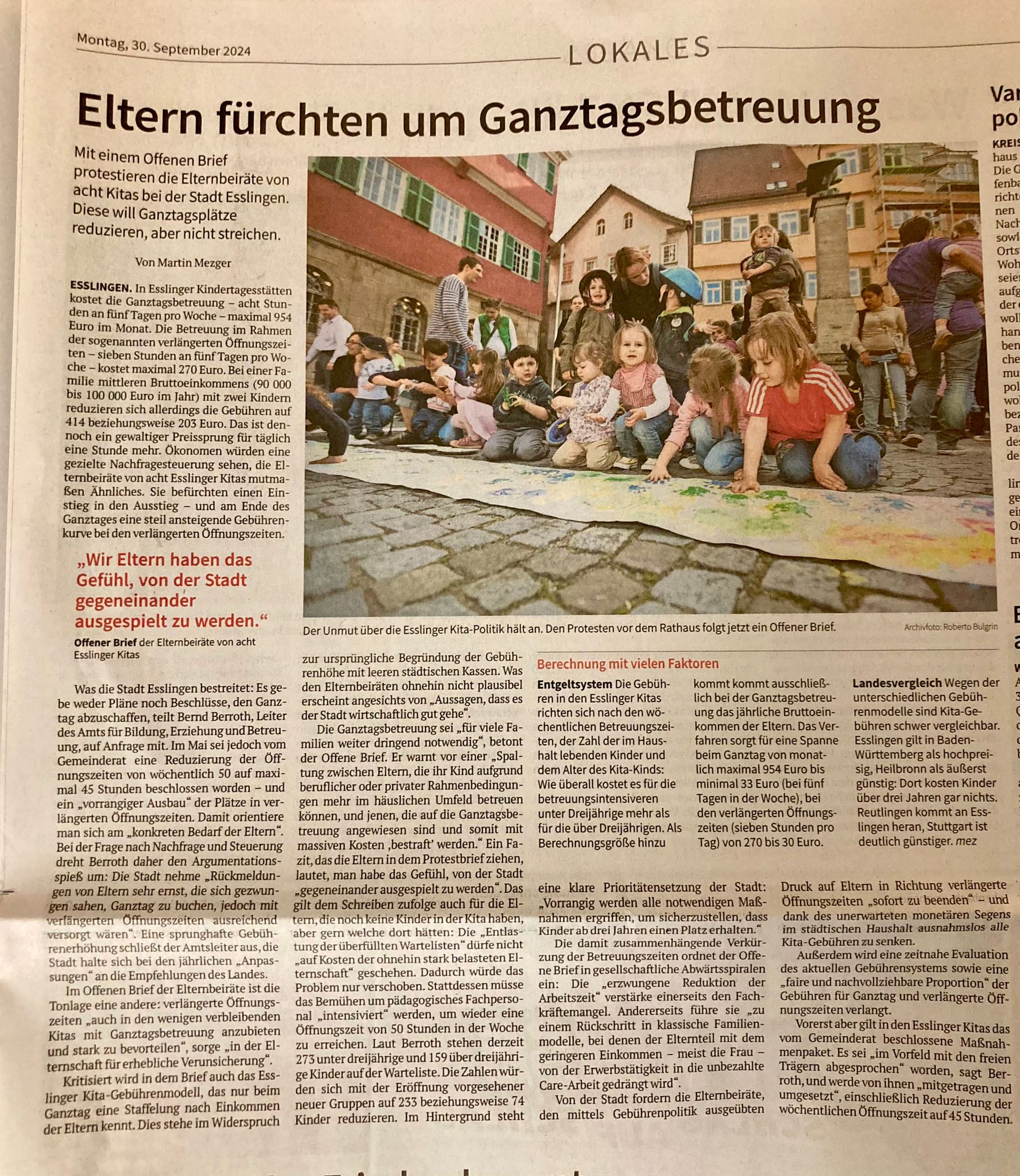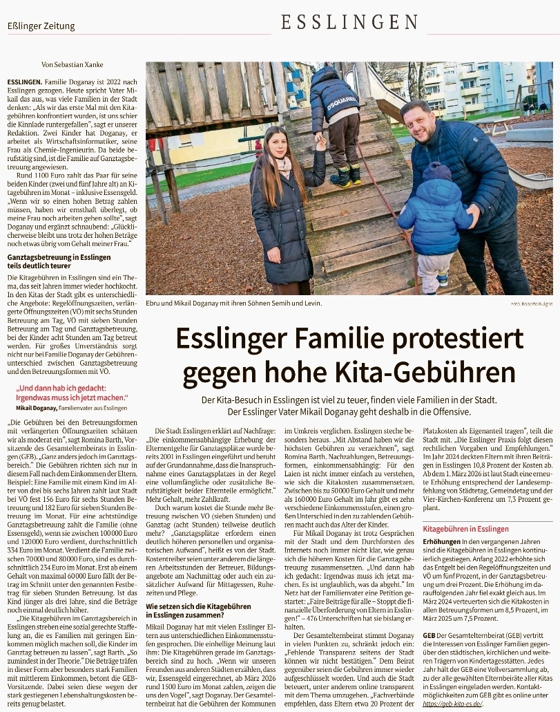Esslinger Vater geht mit Petition gegen zu hohe KiTa-Gebühren in Esslingen in die Offensive. Auch der GEB nimmt Stellung.